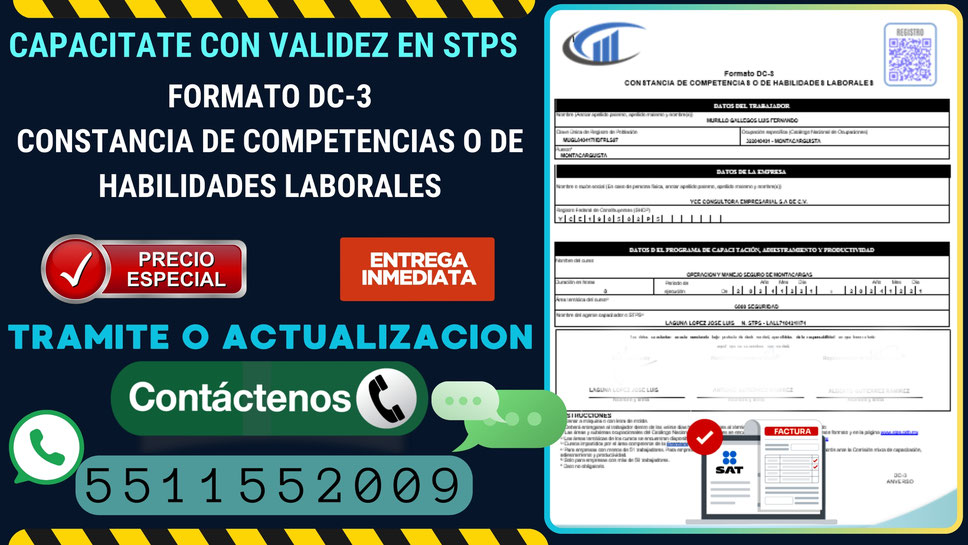 El DC-3 es una Constancia oficial avalado por la Secretaría de Trabajo y Prevención Social (STPS), que avala habilidades y/o competencias laborales.