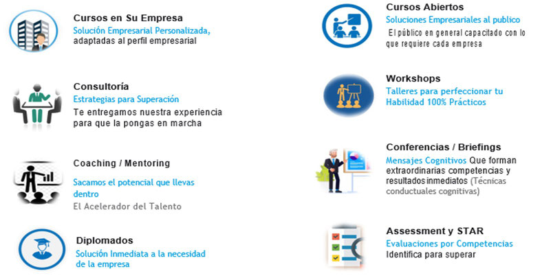 Elevamos la productividad de la empresa, con una capacitación practica y enfocada a la competencia requerida en la empresa, transformamos sus conocimientos en habilidades que usaran en la empresa ya que nuestros cursos son enfocados a aprender las competencias de la empresa.